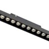 Светильник мощностью 12W 1200Lm для магнитных треков шириной 20 мм. Цвет свечения в диапазоне 4000К. Высокий индекс цветопередачи обеспечивают качественное, равномерное освещение. Компактный фигурный корпус из алюминия черного цвета, экран из поликарбоната. Светильник надежно крепится на трек с помощью магнитов и механических фиксаторов. Световой модуль поворачивается на 180 градусов. Узкий угол излучения 24 градуса подойдет для организации направленного освещения. Имеет защиту от пыли IP20 для применения внутри помещений, где нет контакта с влагой. Минимальный коэффициент пульсации гарантирует зрительный комфорт без мерцания. Гарантия до 5 лет указывает на надежность и длительную работоспособность. Блок питания для подключения 48V поставляется отдельно.