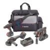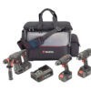 Набор состоит из трех аккумуляторных инструментов и сумки.