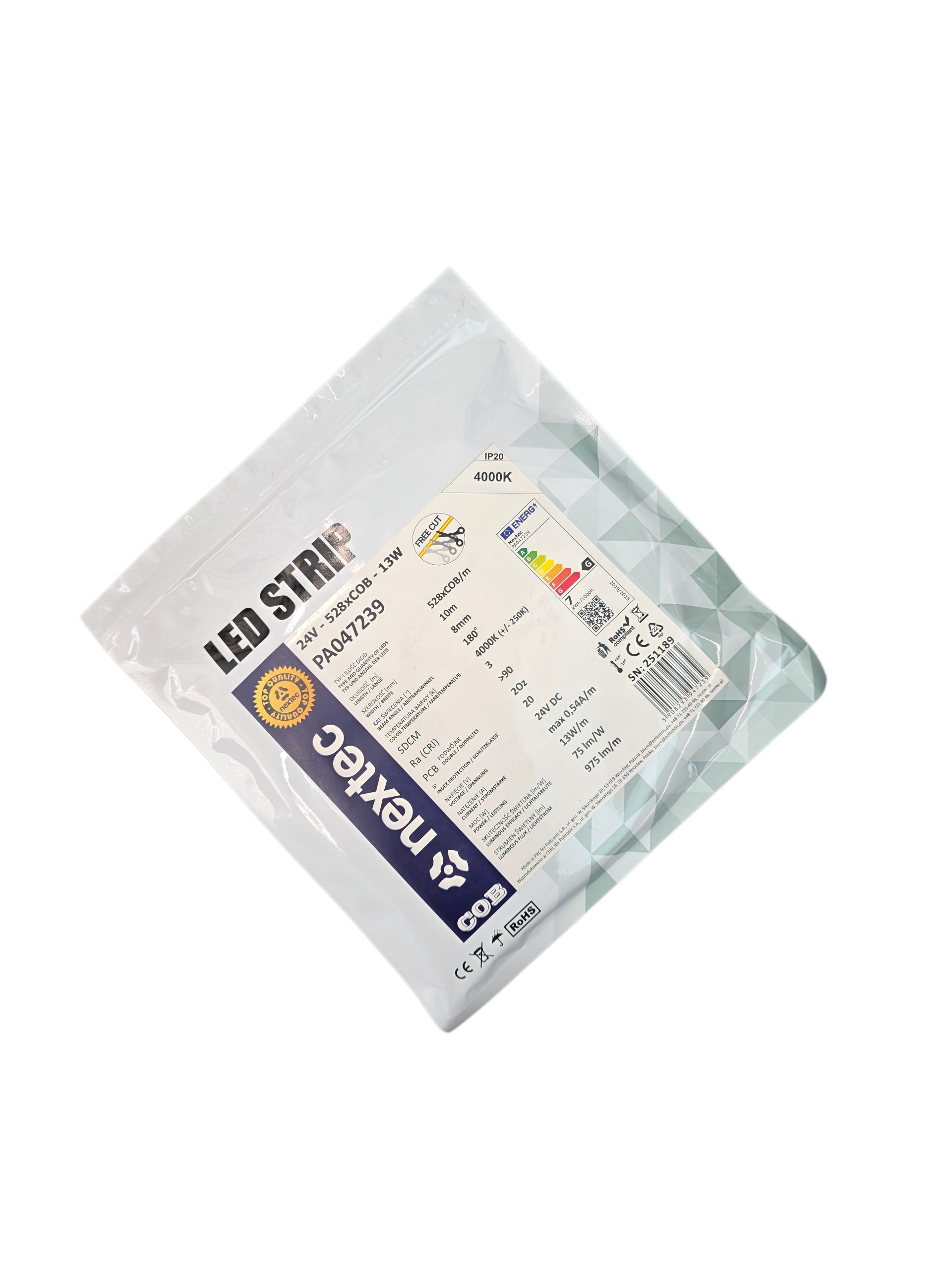 NEXTEC COB LED Strip FREE CUT 4000K 13W/m IP20 75 lm/W 975 lm/m PA047239 (LS21)