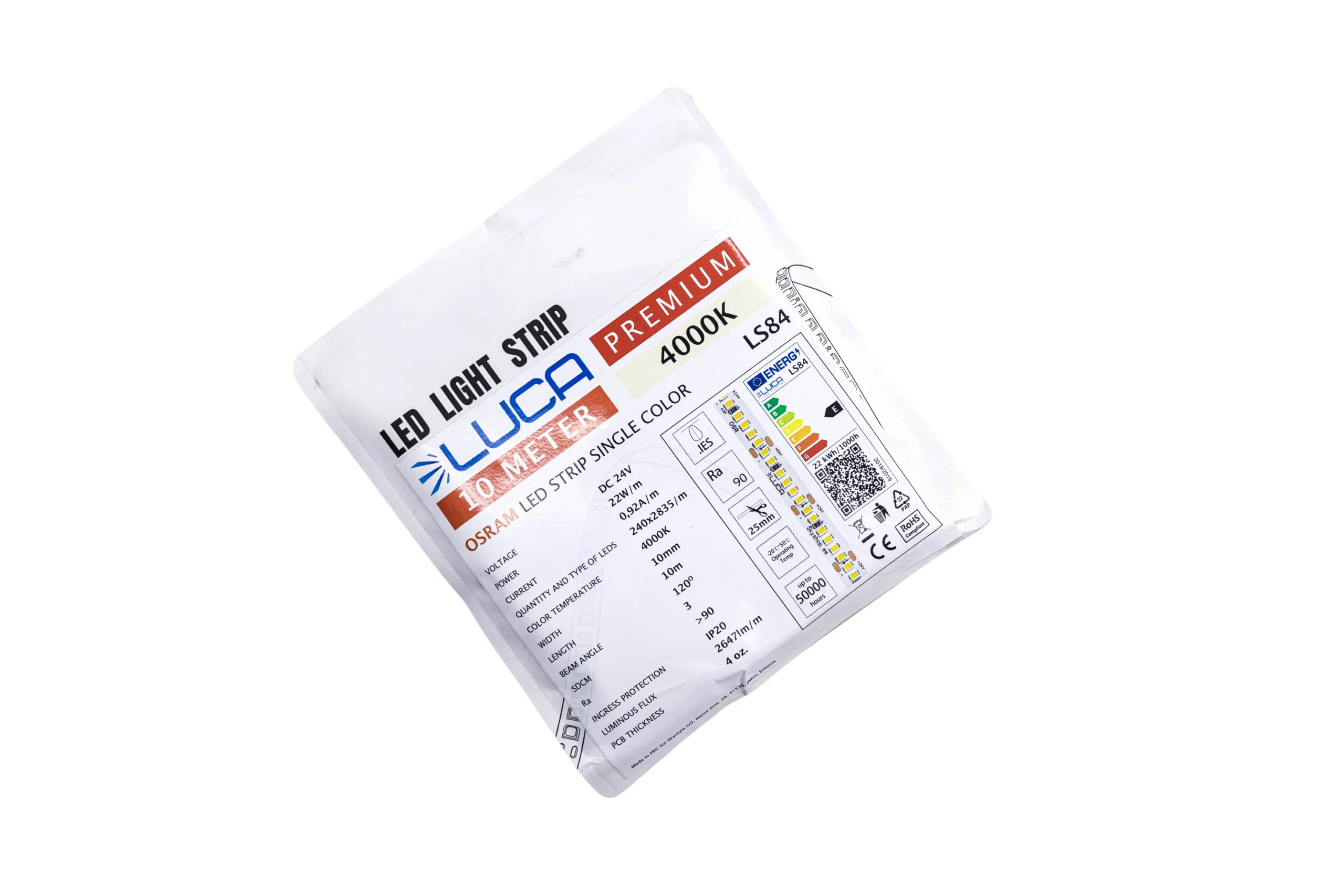 LED-riba LUCA LS84 on mõeldud kvaliteetse ja ühtlase neutraalse valguse loomiseks ilma nähtavate punktide ja heleduse kõikumisteta. See on varustatud usaldusväärsete OSRAM LED-idega, mis tagavad stabiilse töö, kõrge efektiivsuse ja loomuliku värviedastuse. Riba sobib suurepäraselt nii põhivalgustuseks kui ka dekoratiivseks taustvalgustuseks, täiustades harmooniliselt kaasaegseid sisekujunduslahendusi.
